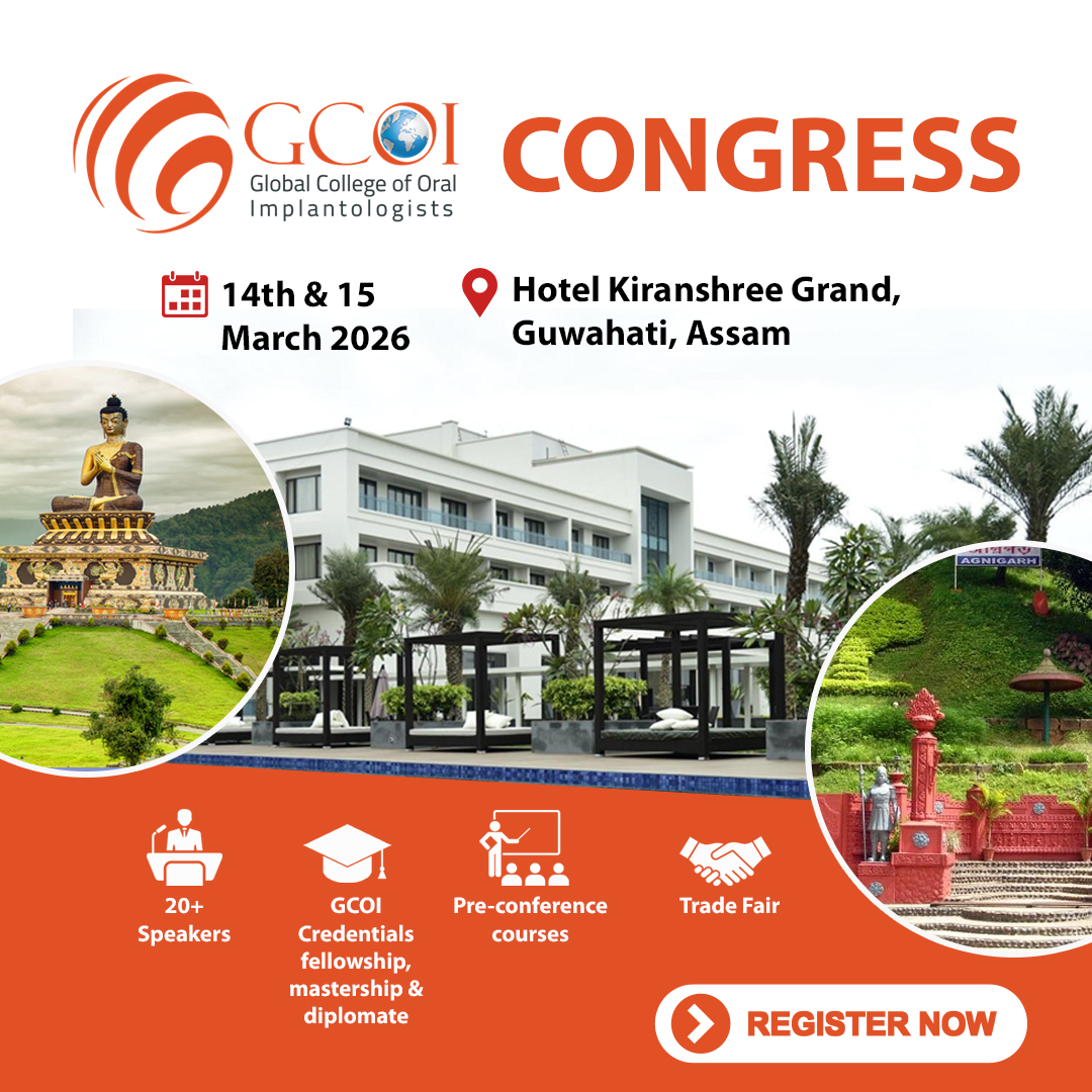 Join leading implantologists, oral surgeons, prosthodontists and allied dental professionals for the 2025 GCOI Congress — a premier platform for the latest advancements in implant dentistry. Learn from international and national experts, engage in live-workshops and hands-on sessions, network with industry partners and benefit from cutting-edge sessions focusing on digital workflows, full-mouth rehabilitation, immediate loading, basal implants, and emerging technologies.