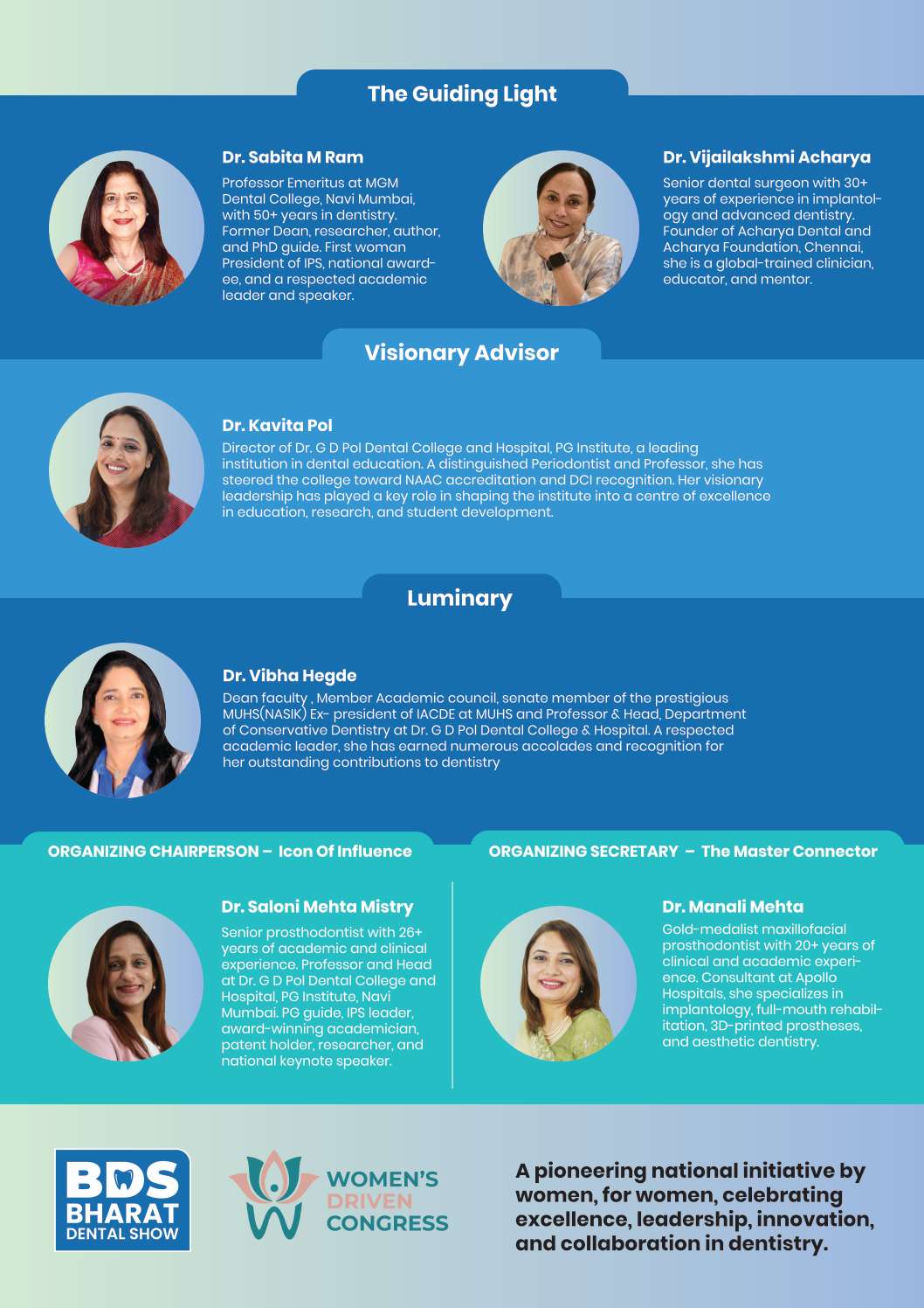 The congress is guided by the visionary leadership of Dr. Kavita Pol, Director, Dr. G. D. Pol Foundation and Y.M.T. Dental College & Hospital, whose unwavering commitment to academic excellence and institutional growth made this platform possible.