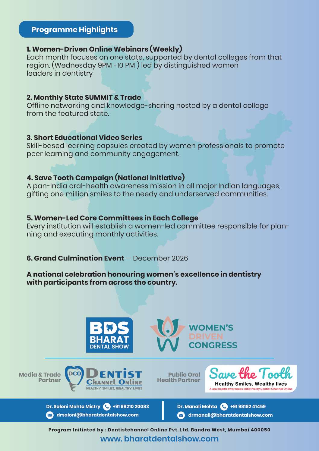The Bharat Dental Show 2026 is a pioneering initiative by women, for women, designed to: