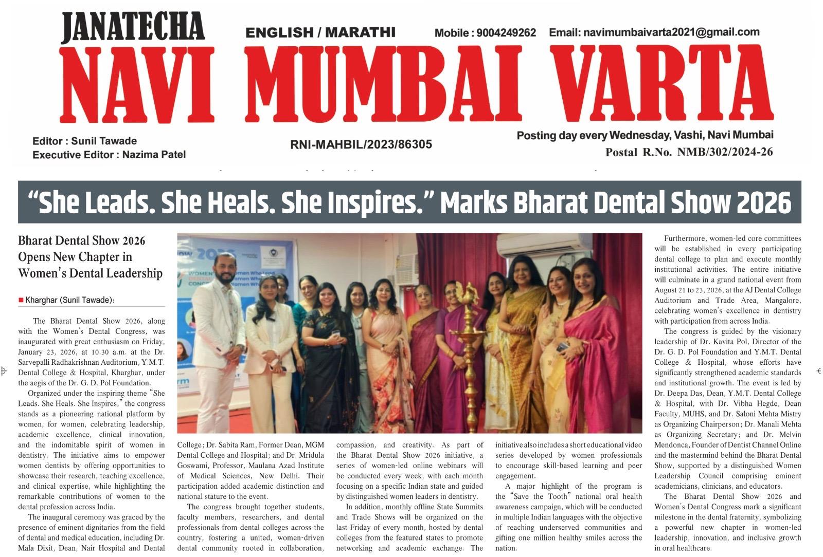 With deep emotion, pride, and purpose, the Bharat Dental Show 2026, along with the Women’s Dental Congress, was inaugurated at 10:30 a.m. at the Dr. Sarvepalli Radhakrishnan Auditorium, Dr. G D Pol Dental College and Hospital, PG Institute, Kharghar, under the aegis of the Dr. G. D. Pol Foundation. What unfolded was not merely an inauguration—it was the beginning of a new movement in dental education and ethical trade in India.